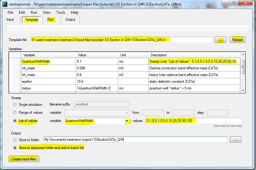 The following screenshot shows how to use the Template feature of nextnanomat